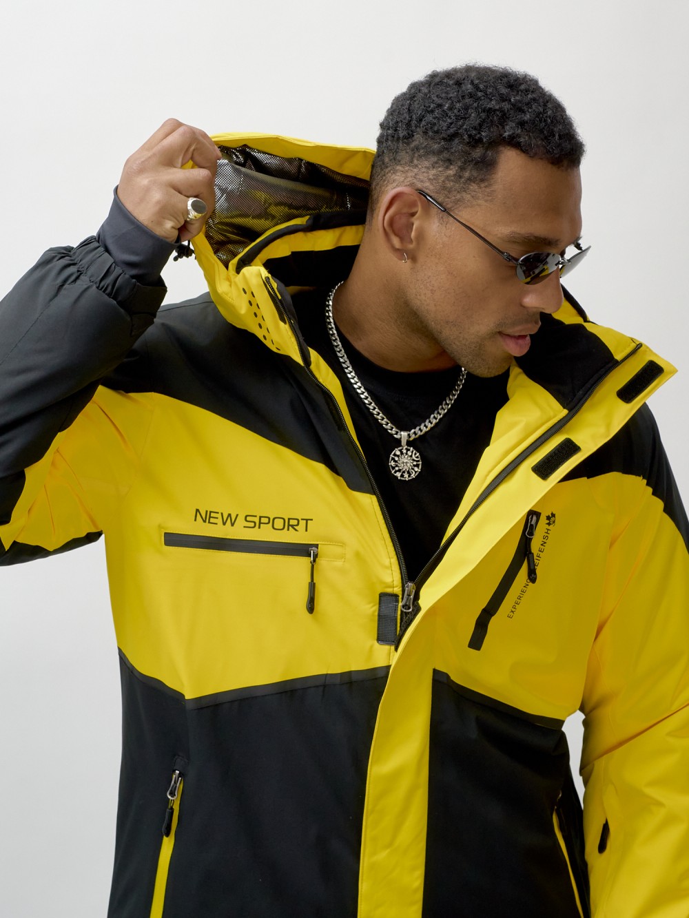 Горнолыжная куртка мужская УЦЕНКА желтого цвета 0913J